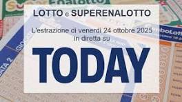 Estrazioni Lotto oggi e numeri SuperEnalotto di venerdì 24 ottobre 2025 - Today Lotto, SuperEnalotto e 10eLotto: l'estrazione di oggi venerdì 24 ottobre 2025 in diretta poco dopo le 20. Il jackpot vale 68,6 milioni di euro, ...