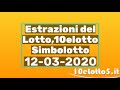 |     Estrazione Lotto e 10eLotto: i numeri vincenti estratti oggi giovedì 12 marzo 2020     Oggi, giovedì 12 marzo 2020, alle ore 20 va in scena l'estrazione del Lotto numero 31 del 2020 e del 10eLotto. TPI segue in diretta, in tempo reale, ...