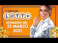 Estrazioni Lotto e SuperEnalotto di oggi, i numeri vincenti di giovedì 25 marzo 2021 Il montepremi del SuperEnalotto sale a 126,6 milioni di euro, conosceremo tutti i numeri estratti sulle ruote del Lotto oggi e la combinazione vincente ...