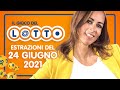 Estrazioni Lotto e SuperEnalotto oggi 24 giugno 2021: numeri vincenti e quote     Il SuperEnalotto mette in palio un jackpot da 45,1 milioni per chi indovina la sestina vincente. Vediamo tutti i numeri estratti, con quote e vincite, per ...